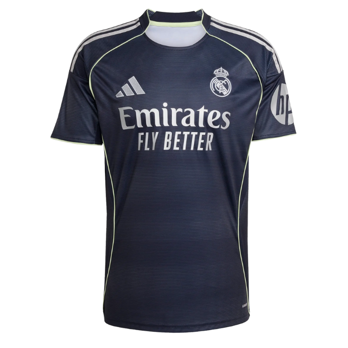 Camiseta oficial del Real Madrid en color azul marino, diseñada con un estilo moderno y elegante. Confeccionada en material ligero y transpirable que ofrece comodidad durante todo el día, ideal tanto para entrenar como para lucir tu pasión por el club. Incorpora el escudo del Real Madrid y acabados de alta calidad que reflejan la grandeza del equipo.