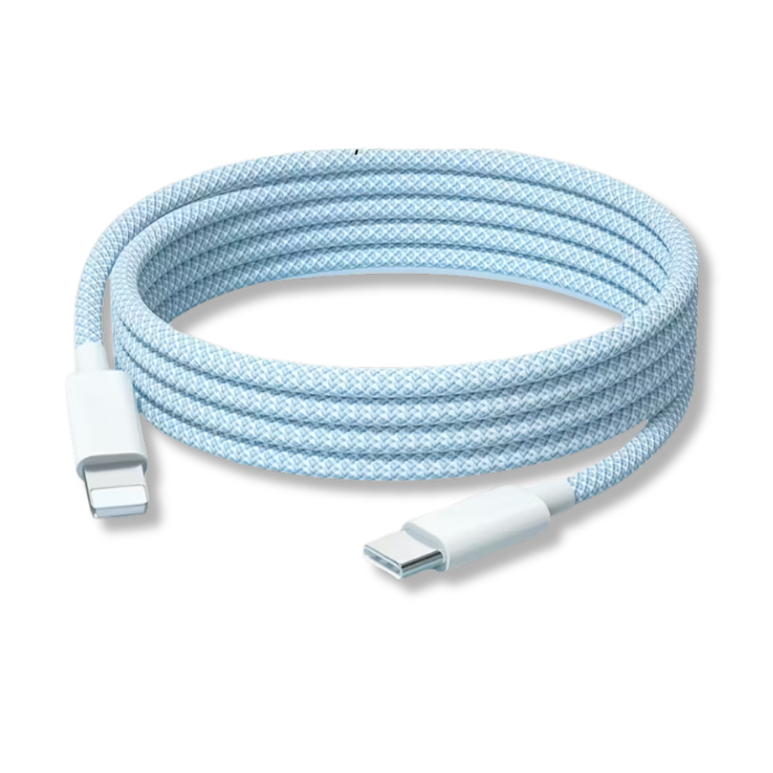 permite cargar rápidamente y sincronizar dispositivos Apple (iPhone, iPad, AirPods) conectándolos a puertos o cargadores USB-C. Soporta carga rápida (hasta 27W o más, dependiendo del cargador) para alcanzar un 50% de batería en 30 minutos. Es ideal para usar con adaptadores de corriente USB-C de Apple (18W, 20W, 29W, 30W, 61W, 87W o 96W)